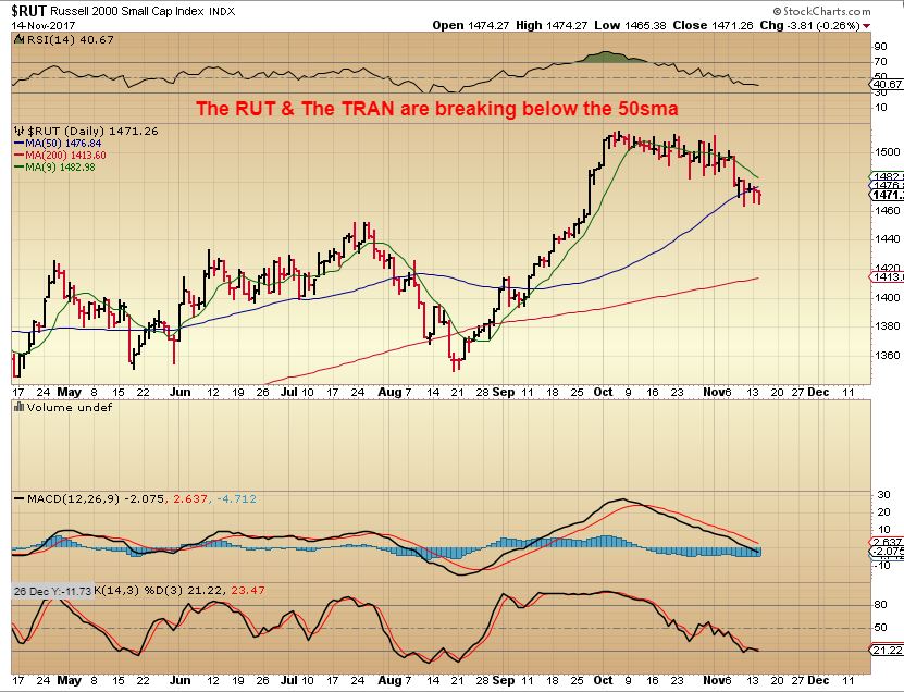 The TRAN, RUT, BKX, etc., broke below their 50sma. Let’s take a look.