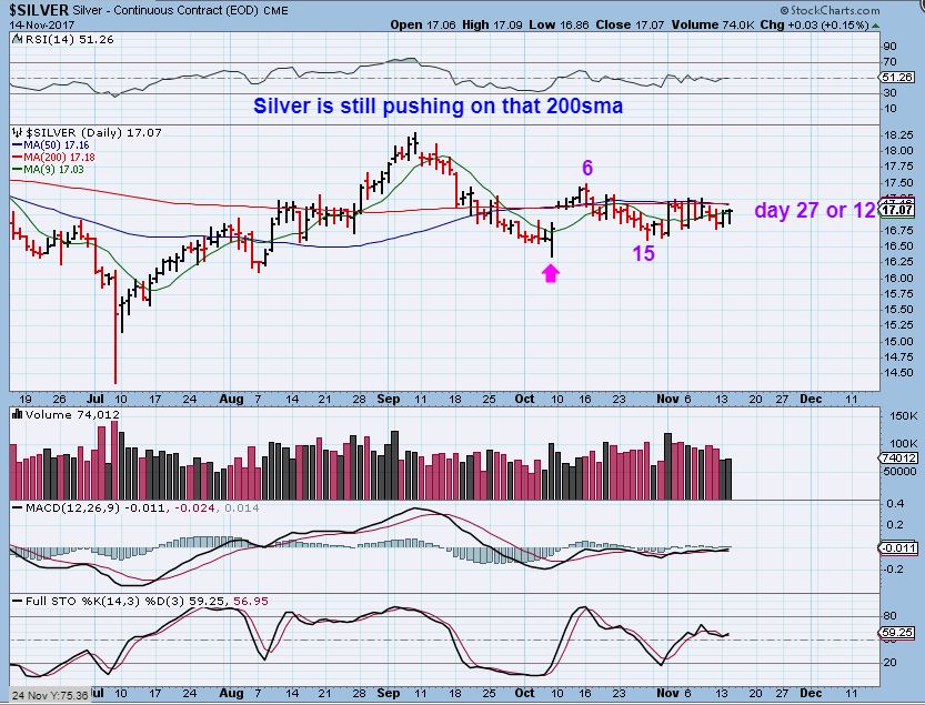 GLD popped to the 50sma and turned down. GDX GDXJ turning down- so it certainly does look as though the cycle counts are working & it is too late for a rally.