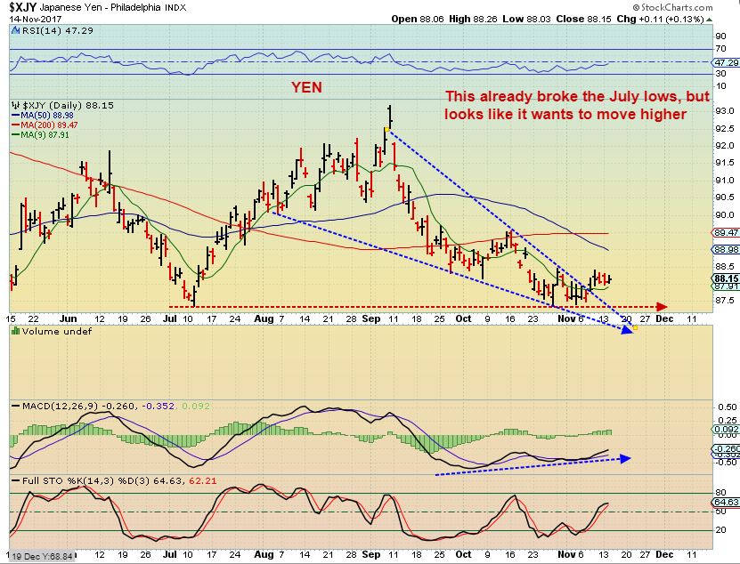 YEN –  I just wanted to point out that the YEN seems to be a bit ahead of Gold.  It broke the July lows already. Interestingly, this looks like a bullish set up. THAT is an interesting change. Let’s look at Gold.