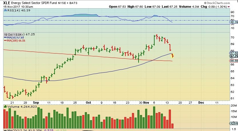 Aaaaaand it’s gone. XLE loses the 50 and 200sma. May find support at 66 (October low) or at 65 (descending trendline).