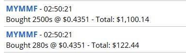 MYMMF– This was the close, a surge to 52 cents with me chasing, and a close at 48 cents. I need more 🙂