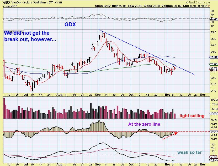Even thought I did a little buying again today in miners, I have to admit this sure does not seem like any kind of bottom in the group that lasted. They were always spikes lower in the past, it will be hard for many to buy (me too) if the group just goes up and down small amounts but in an LT uptrend.
