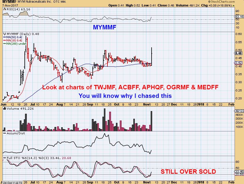 Along with my recent picks of bullish set ups in OGRMF & APHQF, I found MYMMF, but this one comes with a bit of a story with it…
