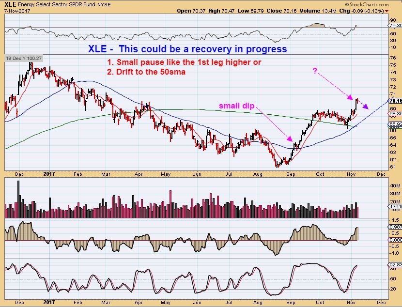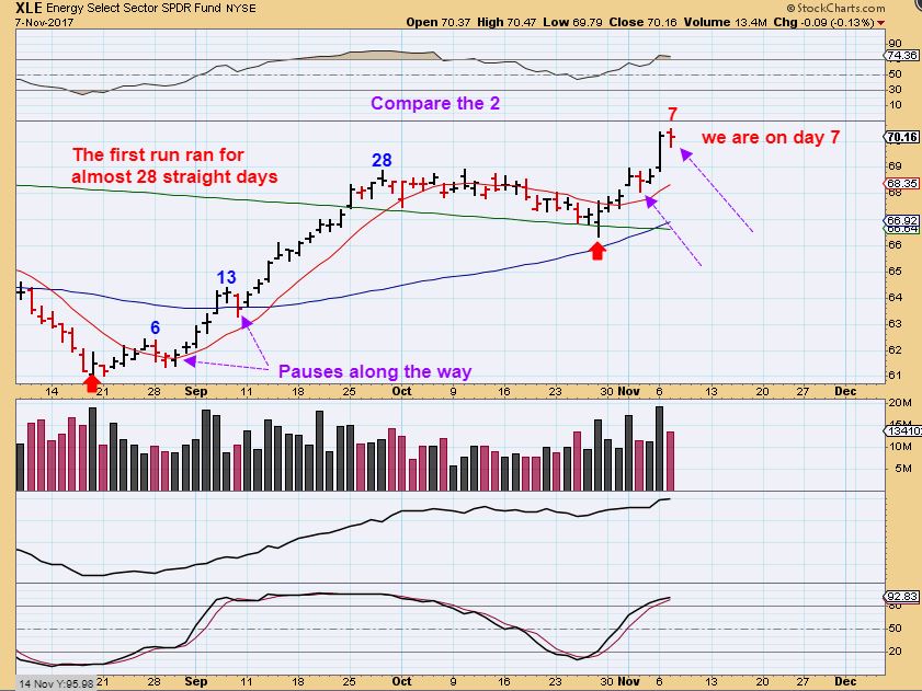 XLE CLOSE UP – If the 2nd leg up is similar to the first one, I dont want to sell at the first or second pause along the way near day 7. The first leg higher had similar pauses. Time will give us evidence.