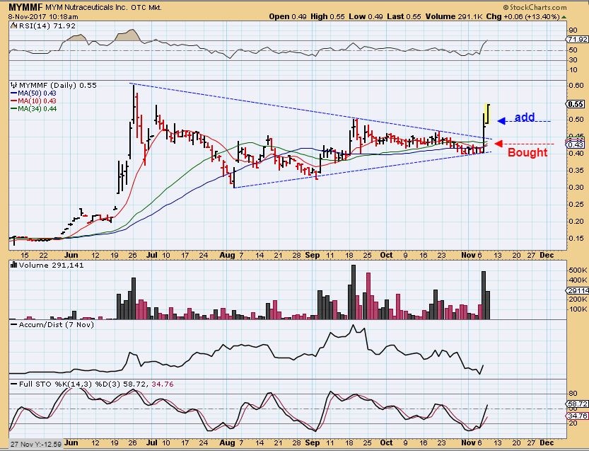 Along with my recent picks of bullish set ups in OGRMF & APHQF, I found MYMMF, but this one comes with a bit of a story with it…