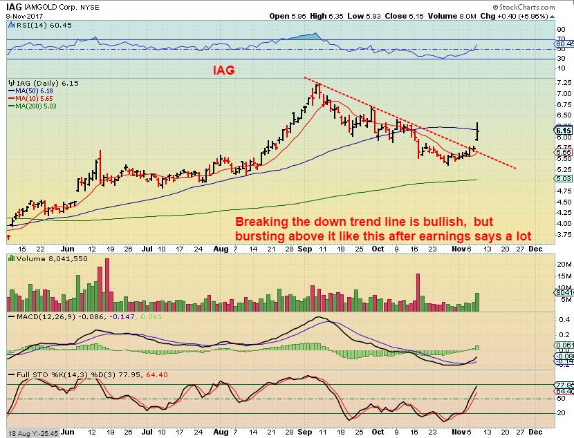 IAG – While EGO made a new low today,  IAG popped bullishly on earnings.  If we drop into an ICL, this would likely back test the trend line, but it is starting to look like Miners are ‘surprising to the upside’ in many cases.   The sign of a bull market, not a bear.