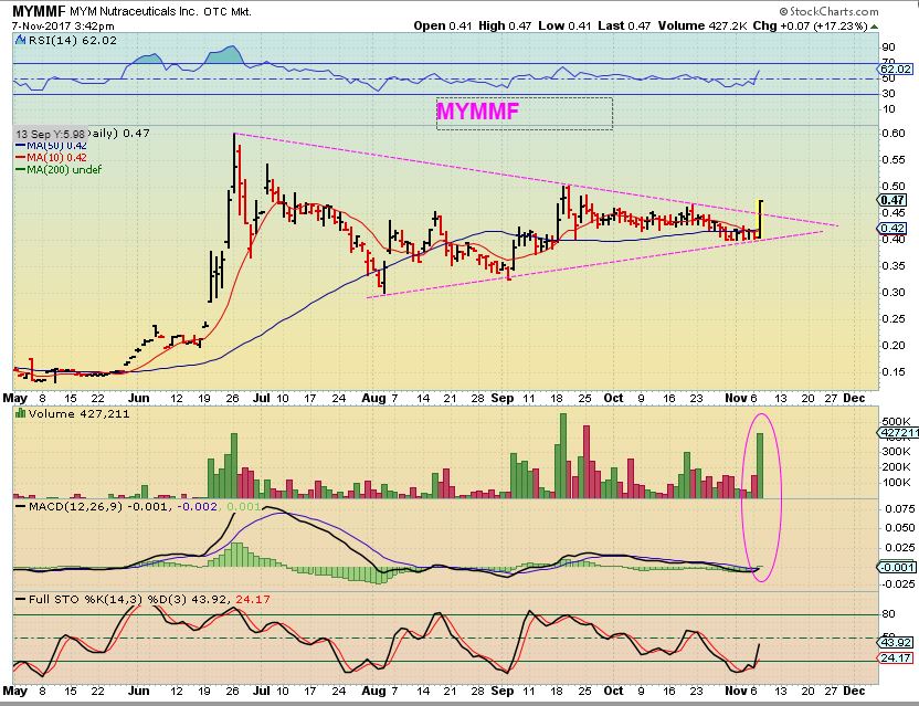 MYMMF – Tuesday I mentioned Canadian Medical Marijuana companies, and that this set up could lead to a quick 40% gain ( 40 cents to 60 cents). I wanted to point out that…