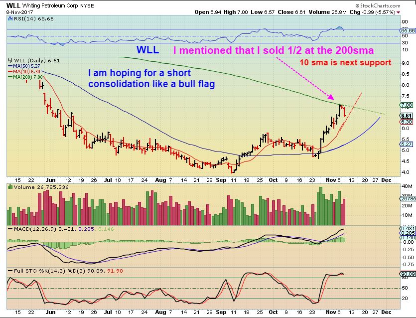 WLL – I mentioned that I sold 1/2 of my WLL from the  run up off of the 50sma as it tagged the 200sma. So far it is dropping to the 10sma, I would like to see that hold. This may start to crawl along the 200sma and that would be bullish, but a faster break down might be a drop to the 50sma.