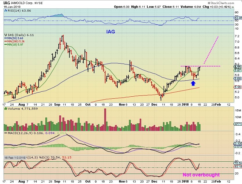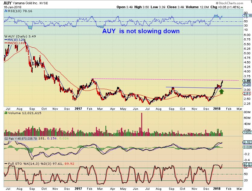 You want MINERS that are not extended too far ( Like AUY is quite extended) so they still have more room to run. They are better if they are near major moving averages like the IAG chart or ABX in the report.