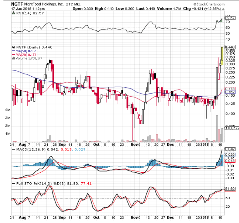 MGXMF – It POPPED Friday and had strong follow through on Tuesday. I am now being asked where to sell. Anywhere that you want to lock in gains is fine, but Look at the above chart again. I personally think that it can return to former highs over time. I would only sell a partial if I was heavily invested, and let some ride. I am thinking that this is going to go higher over time with this set up.