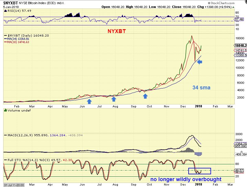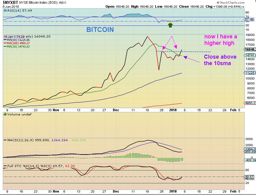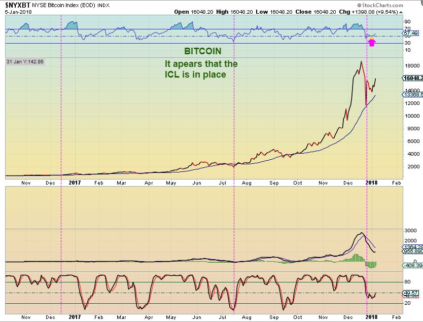 BITCOIN JAN 5th is no longer extremely overbought and bounced right off of the 34 sma (another common moving average in stronger up trends). That could be the ICL, but there is more…