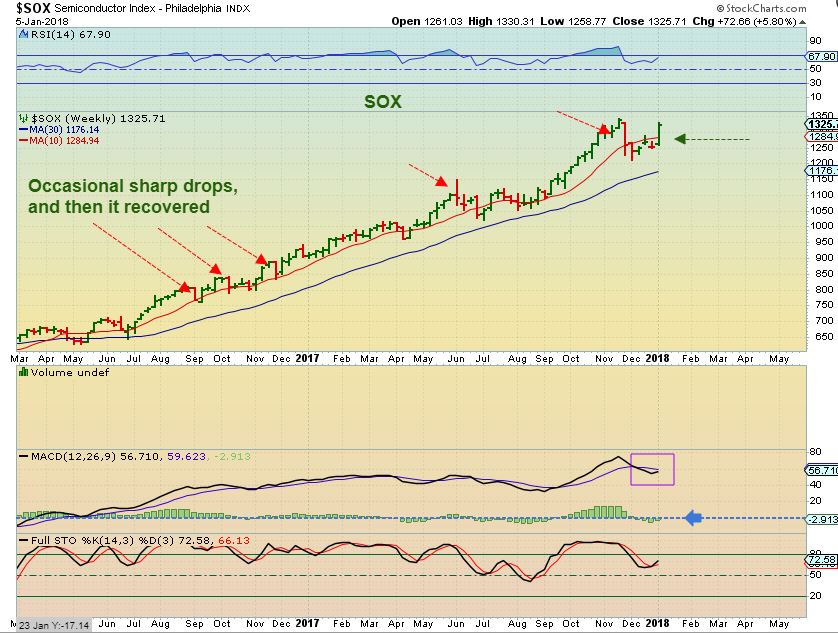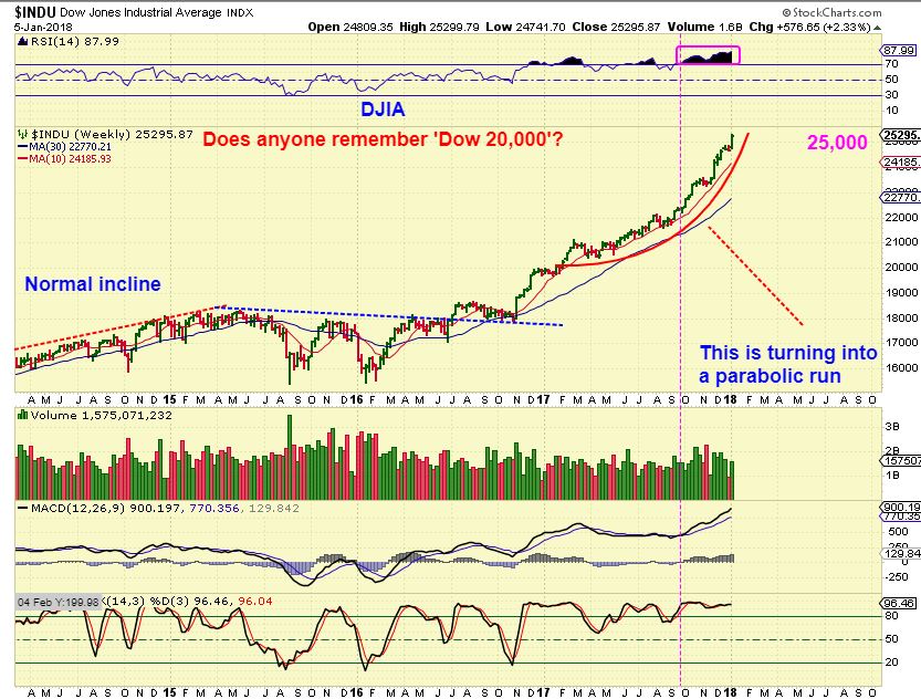 SPX PARABOLIC? – All through 2017 I mentioned the idea of the markets going parabolic. In October I presented this chart again entertaining the idea of a parabolic type run higher. The dips are less deep under those conditions, so we continue to watch this play out.