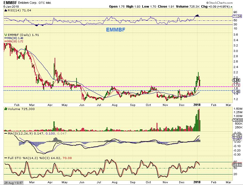EMMBF – I posted this on Dec 27 and this was a Buy, it was ready to break out.