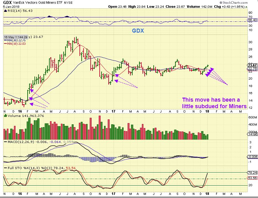 KL – Kirkland Lake has had a bullish start. If we get a dip into a dcl, and you see this back test that consolidation, it would be a buy since this is a strong Miner. The biggest dip was in Oct-Nov, an early Bottom for this one. $12 to $16 since then, $5 to $16.75 in 2017.