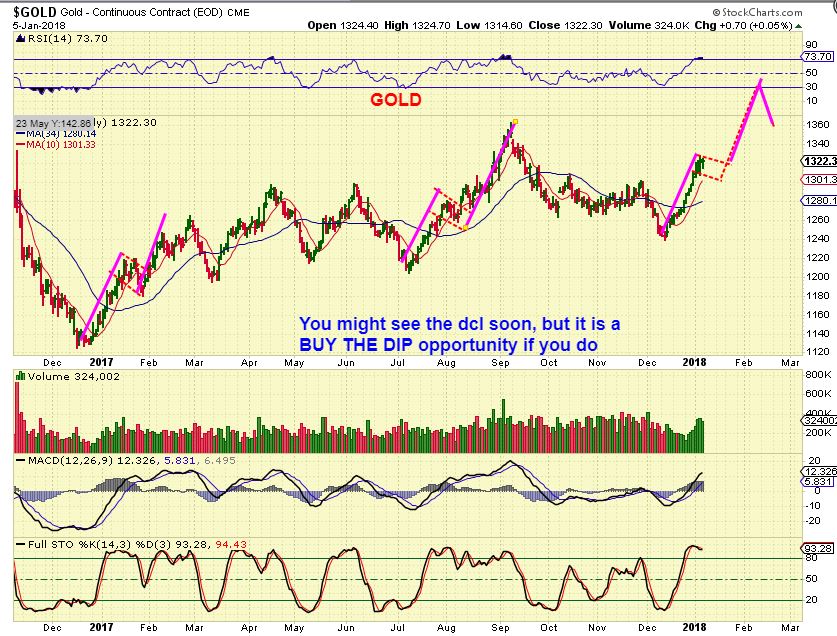 LESS LIKELY: This is my ‘GOLDS ALTERNATE POSSIBILITY’. As Gold gets a bit later in the daily cycle, we could get a pause & dip into a dcl and then a continuation. Let me say this, if we get a dip, I AM NOT WORRIED. Miners would mimic this too.