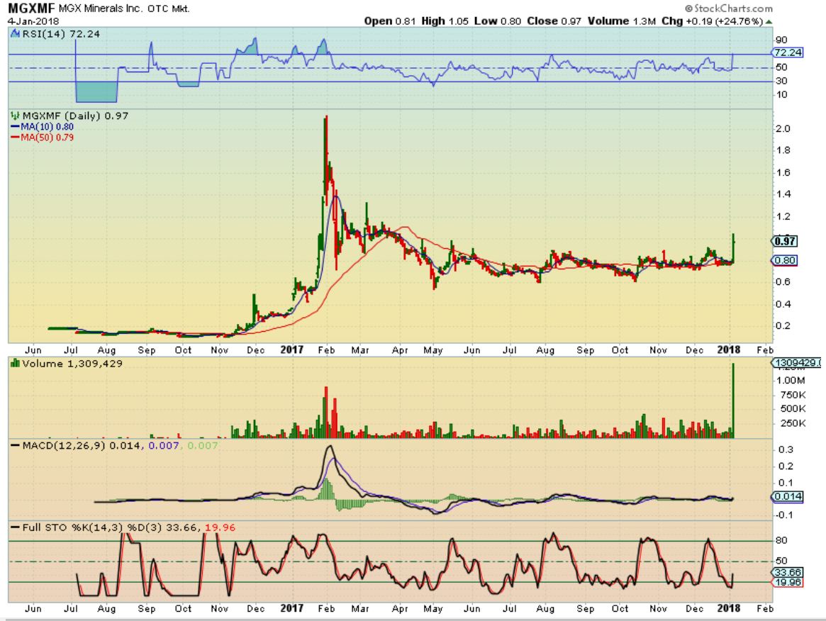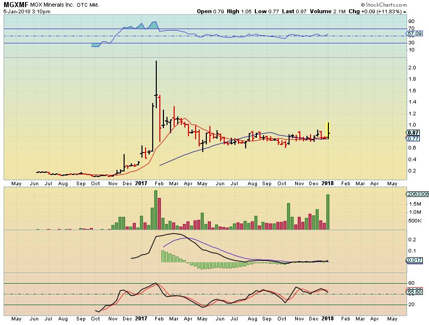 I pointed out MGXMF in Fridays report as a strong POP over $1, closing at 97cents. I have been watching this consolidation all year after that run from the about 13 cents to over $2! This is a 1 year base that does not break down, and Thursdays POP could be the start of something good. I said that I would buy a dip or try to figure out how to get into this one…