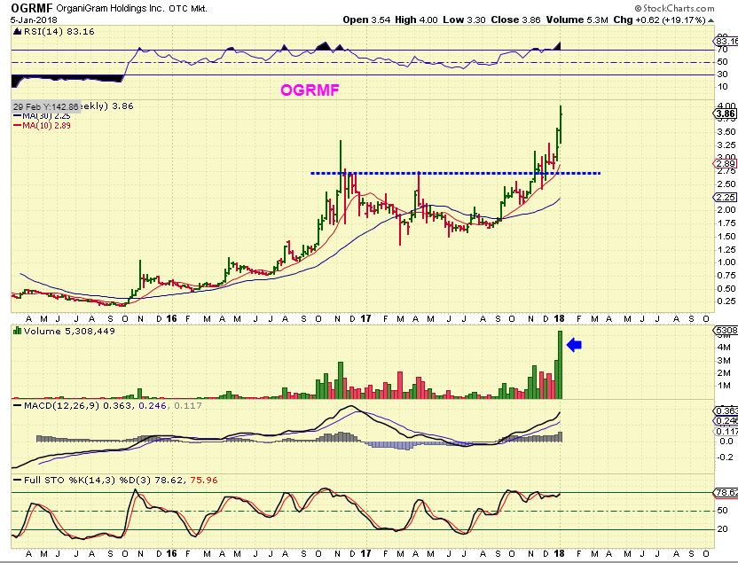 OGRMF WEEKLY – What sell off? We started buying this at $1.75, $2.25, $2.50, etc. It hit $4 this week.