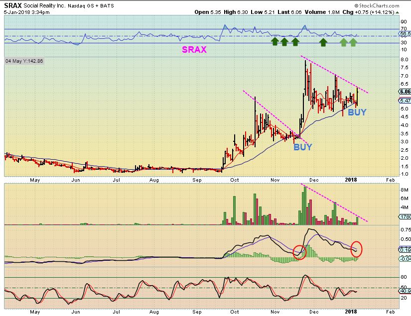 SRAX – This is a good looking set up in the Blockchain sector. It was a buy on the moving averages, and a break out is also a buy.