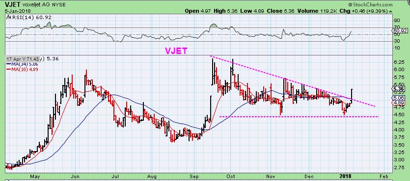 VJET broke out Friday, for the Tech traders out there. A 3-D Printer company, I have traded this a few times in the past, with XONE, DDD, SSYS, etc. During the strong runs, it makes good gains, as seen on this 9 month chart in May & September.