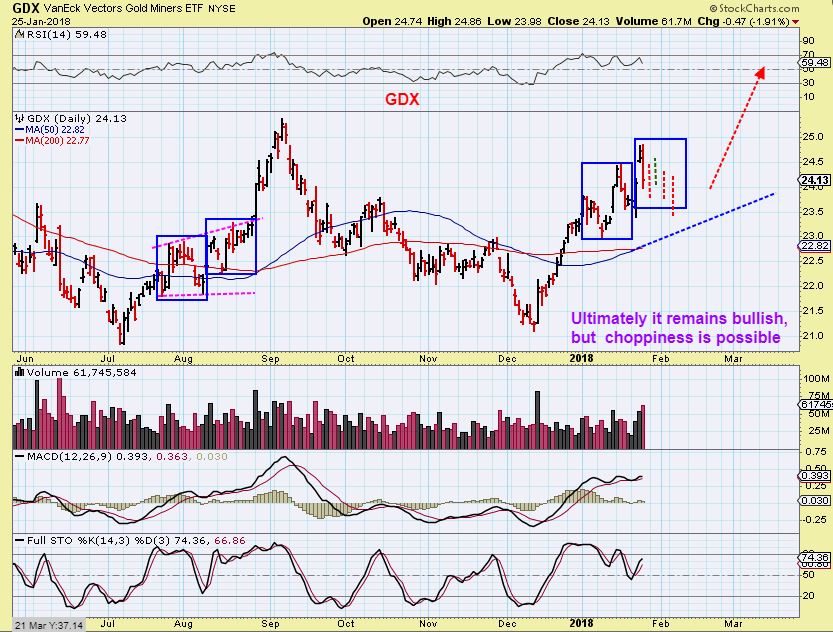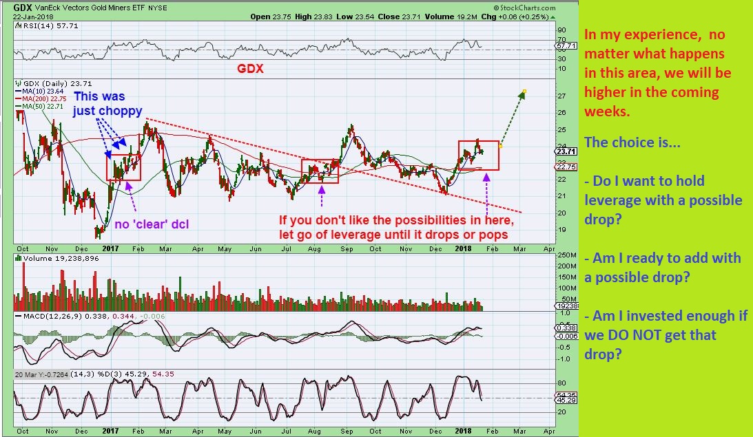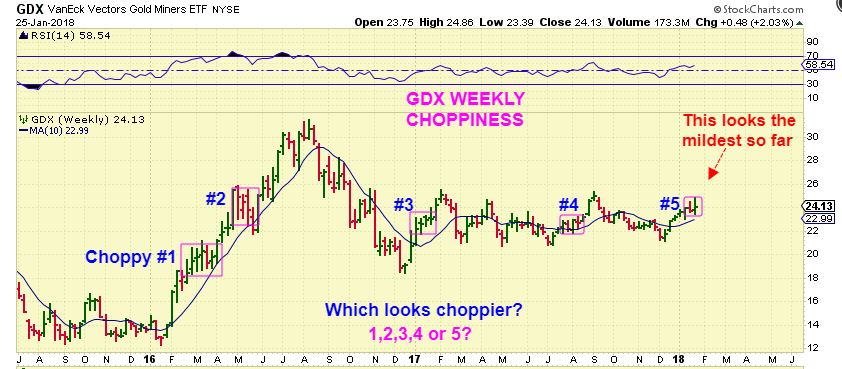 GDX – That said, welcome to the Bull Market. The Bull kicks and bucks and does not make it ’emotionally’ easy to ride. Which marked area of choppiness looks worse? #1? #2? #3? #4? or #5? Probably #1 or #2 found within the 2016 run higher, right? It runs higher – gets choppy – then runs again.