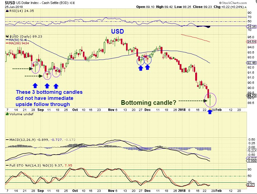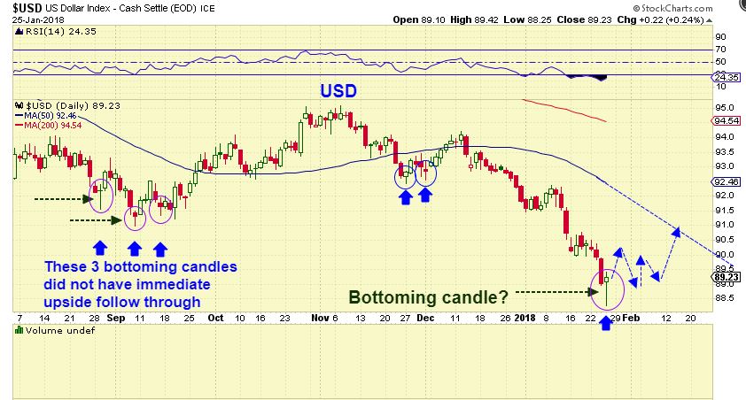 USD #1 – The USD does look like it put in a strong reversal candle. Is this a DCL? It could be…