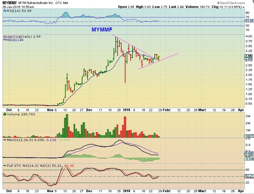 I like MYMMF, and similar set ups in 2 others that I own SPRWF, and OGRMF. It at least looks steady and more sideways- and less likely to sell off, but you never know for sure in this sector. These are all Canadian Companies and I feel that they may be a bit less jumpy. I also still own CNBX, a US company