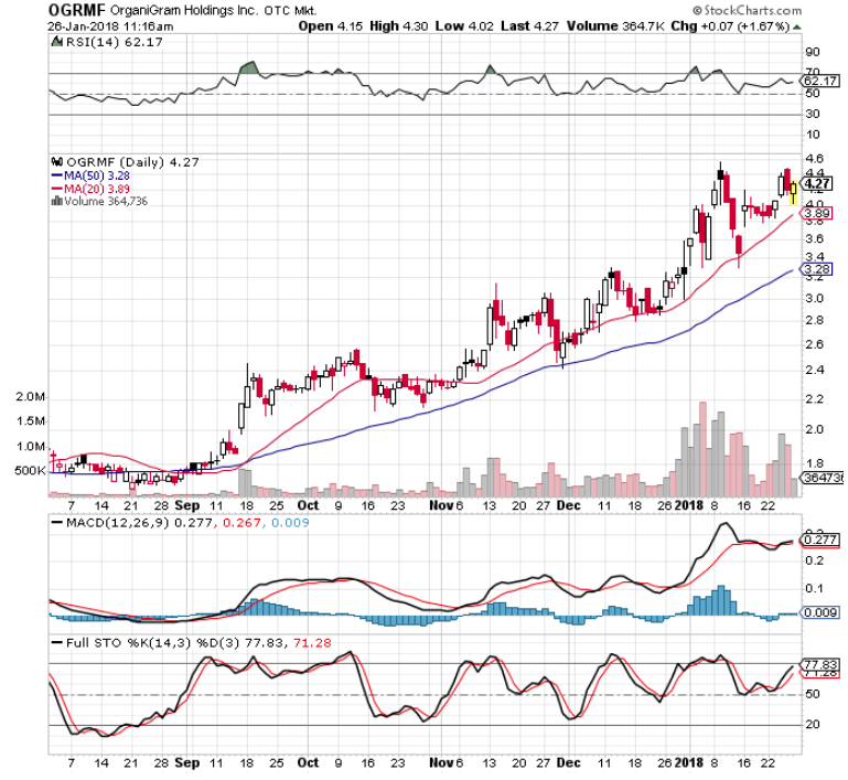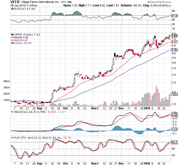 On the MJ front, a couple of issues may be suggesting higher prices as they challenge highs on good volume. https://uploads.disquscdn.com/images/b4b0cc6dfc58e6e3ec8364ed7ae2ef706f971c67af24a450e5f71a062efe8d05.png https://uploads.disquscdn.com/images/abcc00fd6c973ad6cdb017617f64db5c029dc5f4de17b92113cdec32301434e5.png : OGRMF and VFFIF.