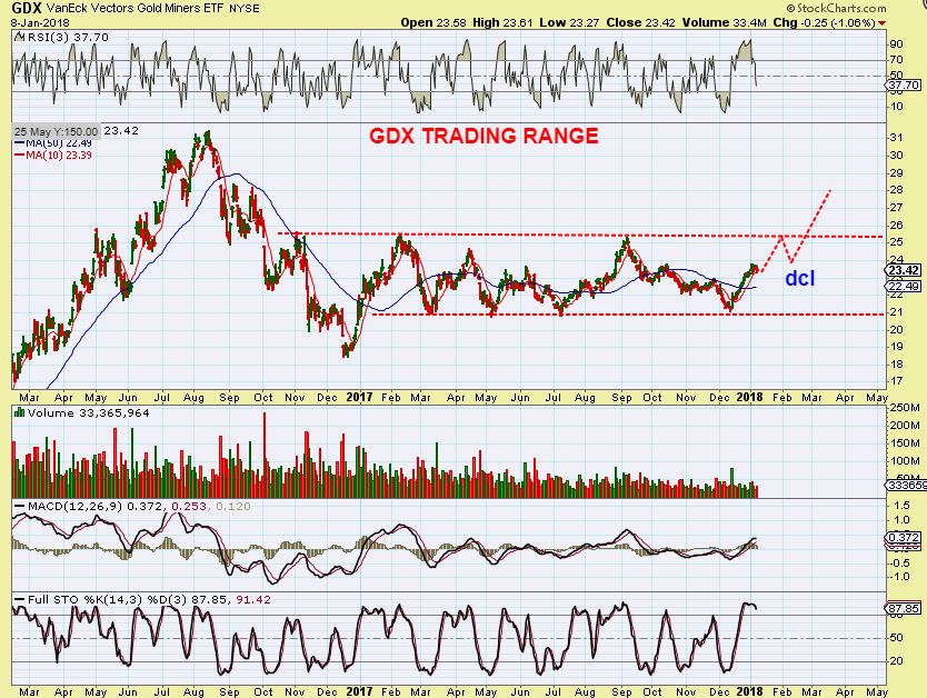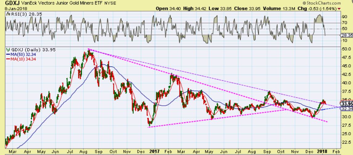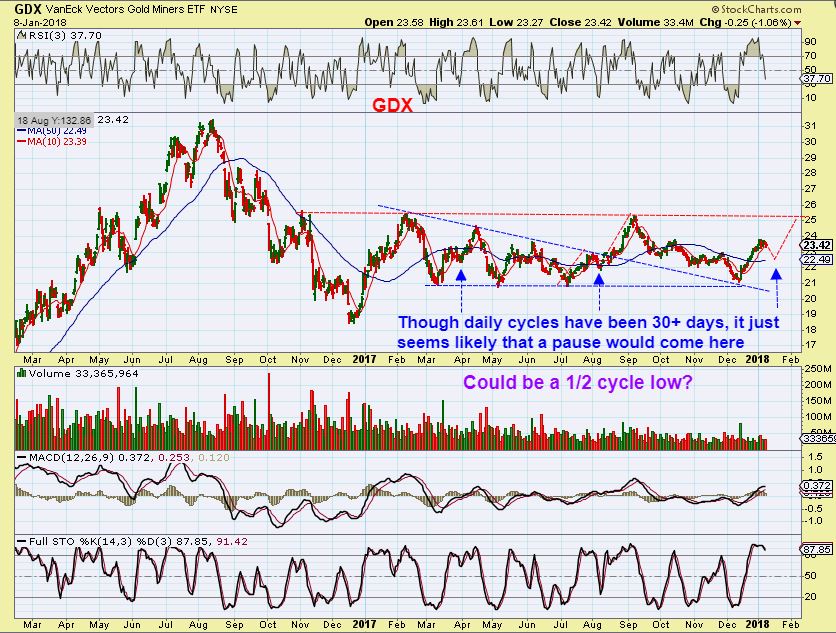 GDX – Or we could get a low and just take off higher after this pause, shaking off some of the traders.