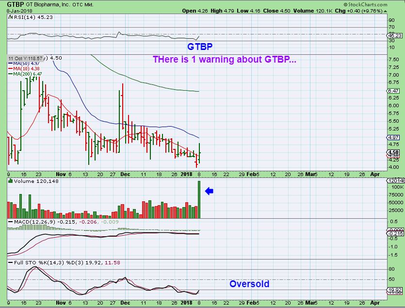 GTBP CHART 1 of 3 – Great volume Pop, oversold, and this could run…
