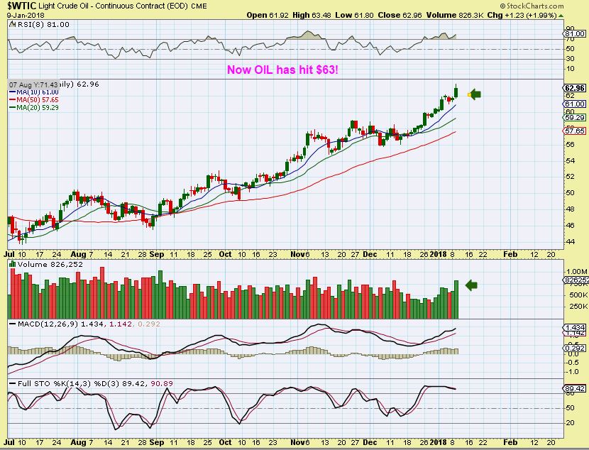 WTIC – Oil hit $63.48 ( Not expected by me). Smart Money is not looking all that smart with extremely high shorts in the COT. It is VERY RARE that they are positioned wrong, and I personally have only seen it 2 times in 20 years. One time was with Gold, I think it was around 2010 if my memory is correct. Today is the inventory report, that may say a lot about where this is going.