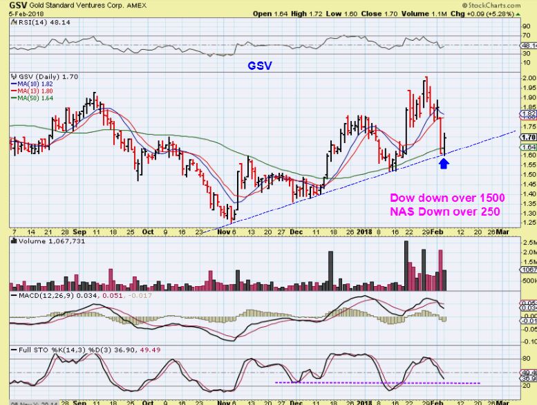 GSV – Reversed on a trend line and the 50sma, and this was with the markets crashing heading into the close. That’s encouraging.