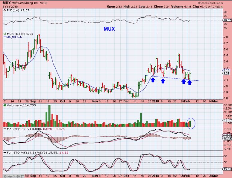 MUX – Up almost 5% with the Down crashing down 1600 points in the final hour. That seems bullish.