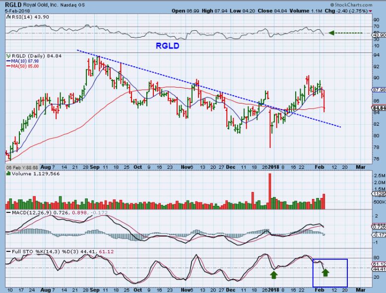 RGLD – RGLD also started to sell down on Monday to the 50sma. Heavier volume than Friday too. The only positive here is that this one didnt really drop Friday.