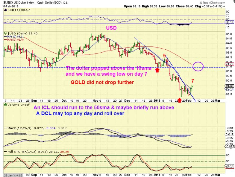 USD – The USD looks to have put in a day 7 high and confirmed a swing low by finally closing above the 10sma. Interestingly, Gold didn’t drop. Please read the chart.