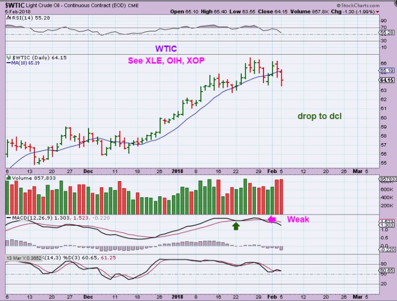 WTIC – Oil gave up a bit more on Monday and the selling may start to accelerate . Like I mentioned in the weekend report, when you take a look at XLE, XOP, OIH, you see that they may be leading the way lower.