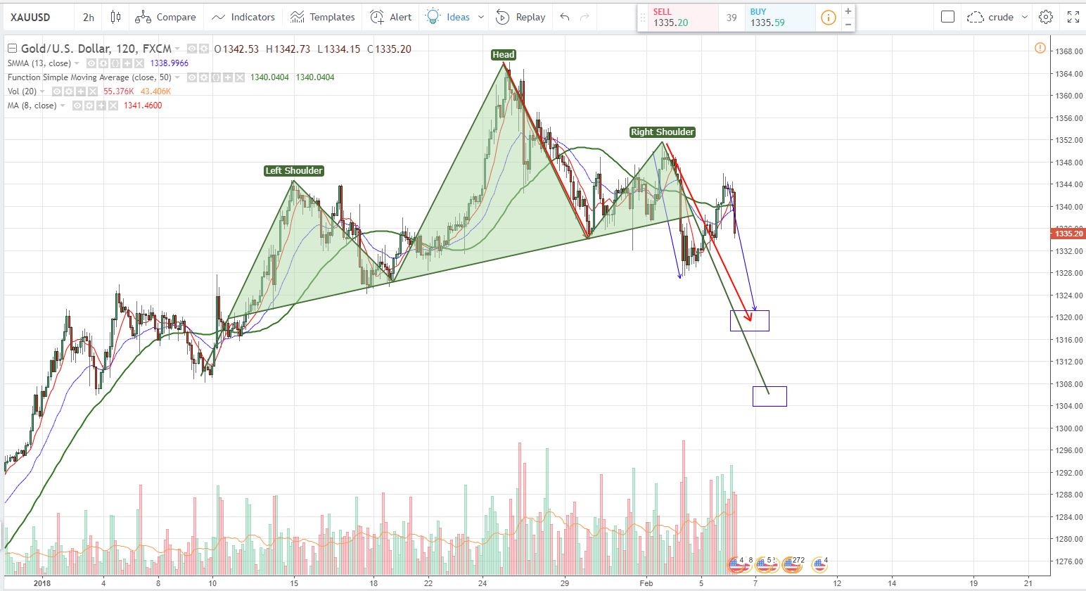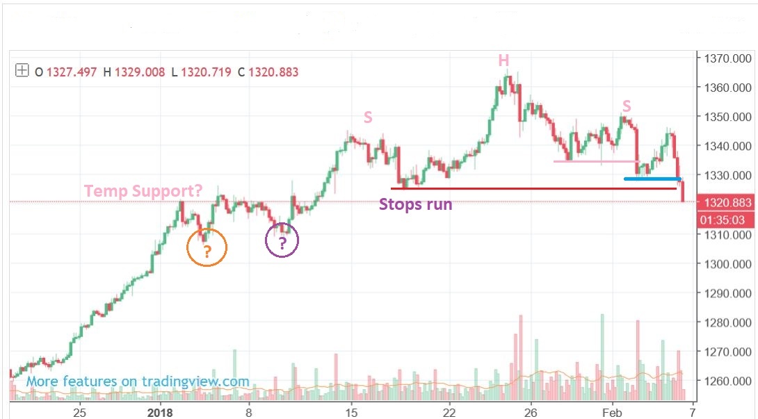 Does anyone else see this forming? AB=CD down to $1320 or H&S down to $1304. Both don’t look good.