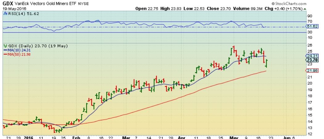 Alex, as someone who has been obsessively examining miners recently for obvious reasons, it seems to me that GDX was playing “catch up” yesterday to GDXJ vs. presenting a cautionary tale. Of course, that is an opinion, but GDXJ was “on the ropes” according to my analysis, while GDX had a little more to give up.