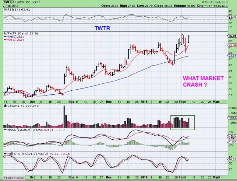 TWTR – I have mentioned this before too, TWTRs problems seem to be behind them. This did not sell off as a mini crash with the markets either. It used to be a $70 IPO, it dropped and based out, and has almost doubled since moving out of its base this summer.