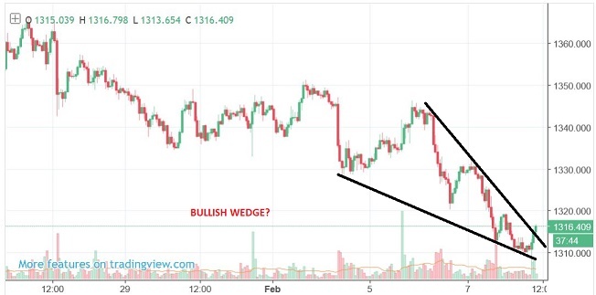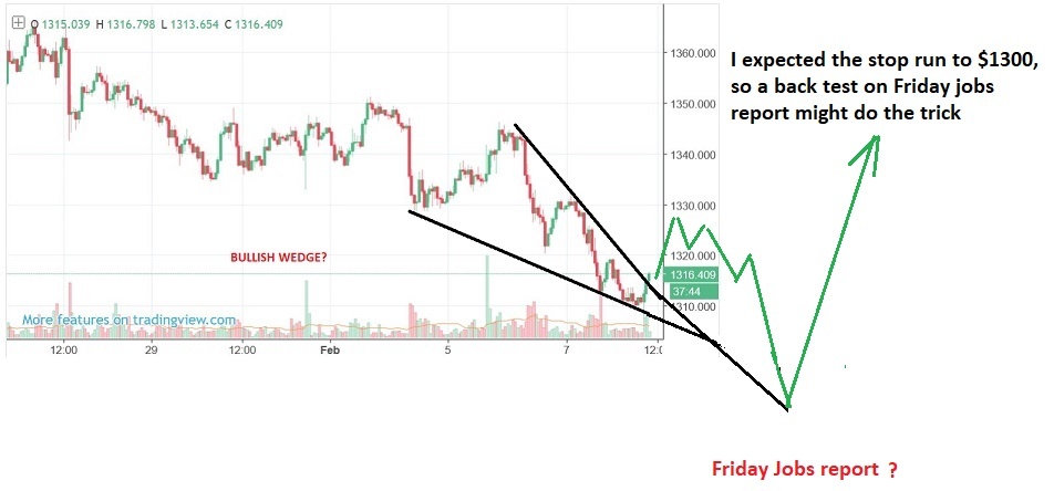 I fully expect a stop run in GOLD to $1300, but this is gold right now and it looks to be breaking a bull wedge.