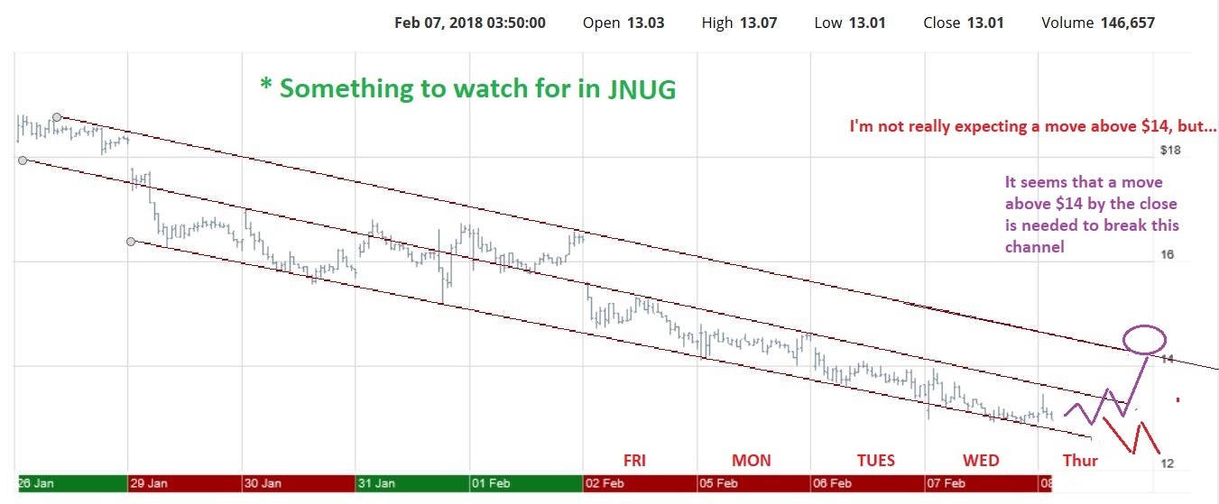 Maybe tomorrows job report will do one final flush down? And then maybe a Friday rally. I am still holding JNUG at $13
