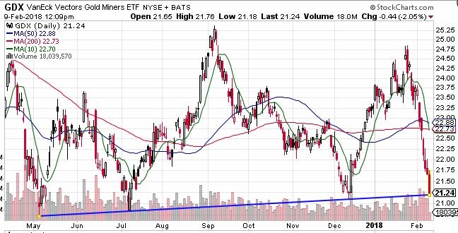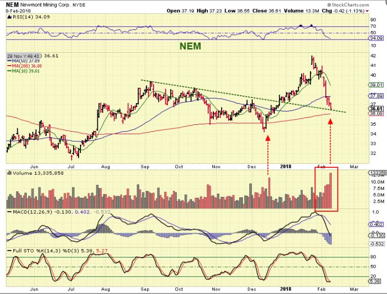 Look at NEM from JULY lows, and AEM from Dec lows- they could be locking in gains, to offset losses in the general market sell off ( Especially if they were leveraged long with UPRO UDOW, TQQQ during the sudden drop Friday & Monday and yesterday)