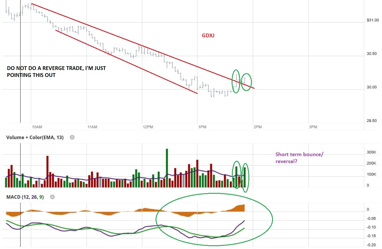 I do hope most people waited for a swing low before grabbing 3x etfs. I mentioned that I jumped in JNUG at $13 as a trade attempt, but that it was a risky trade. That bottom area broke down- stopped me out.