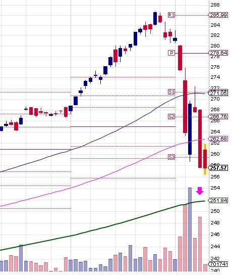 QQQ – And this happened with the NASDAQ closing down 275 points.