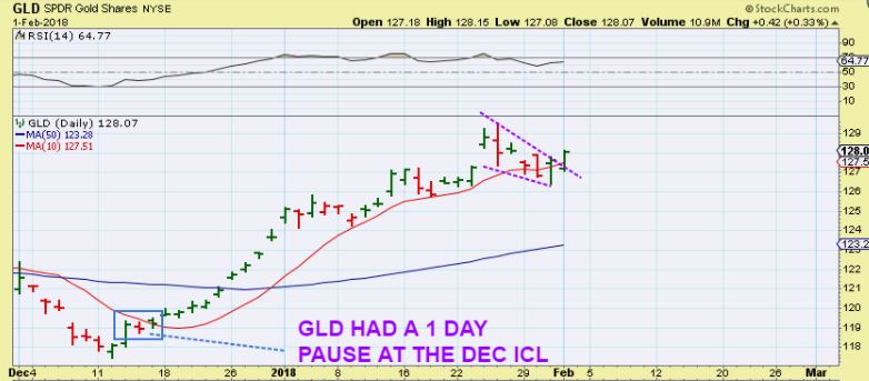 GOLD OR GLD ONLY HAD A 1 DAY PAUSE IN DEC AT THE LOWS, THEN WENT GREEN