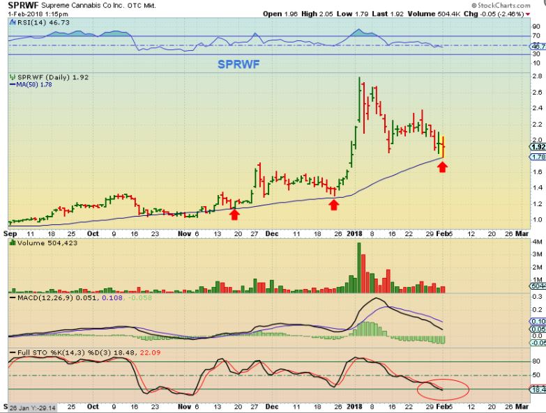 I had some very large gains, and expected the 50sma to act as support, but OGRMF & SPRWF seem to be cutting through . WIll they reverse? I can’t tell, and the 200ssma is far below, so I took 1/2 Profits .