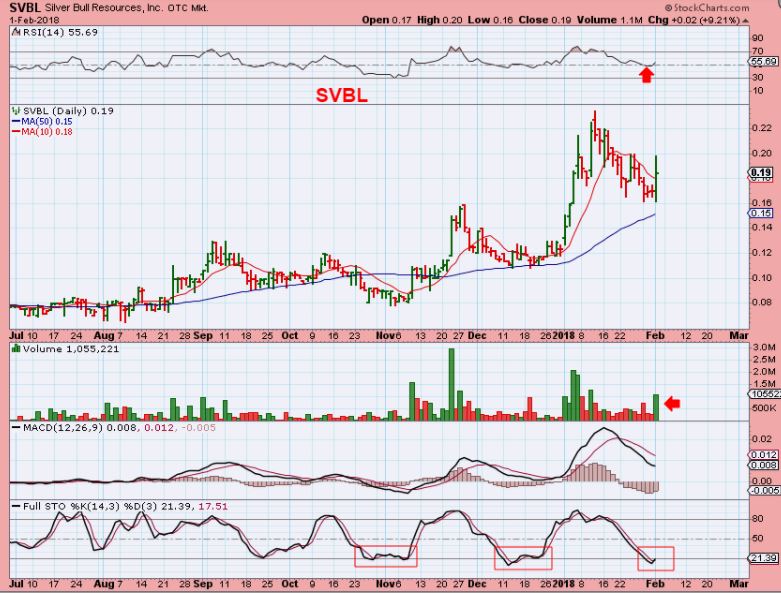 SVBL – SVBL has been acting quite bullishly and actually bottomed in November. Yesterday it spiked higher and had some pretty good volume, so I decided to buy it at 18 cents at the end of the day. I think I actually pushed it up to 19 cents, it was VERY difficult to buy.