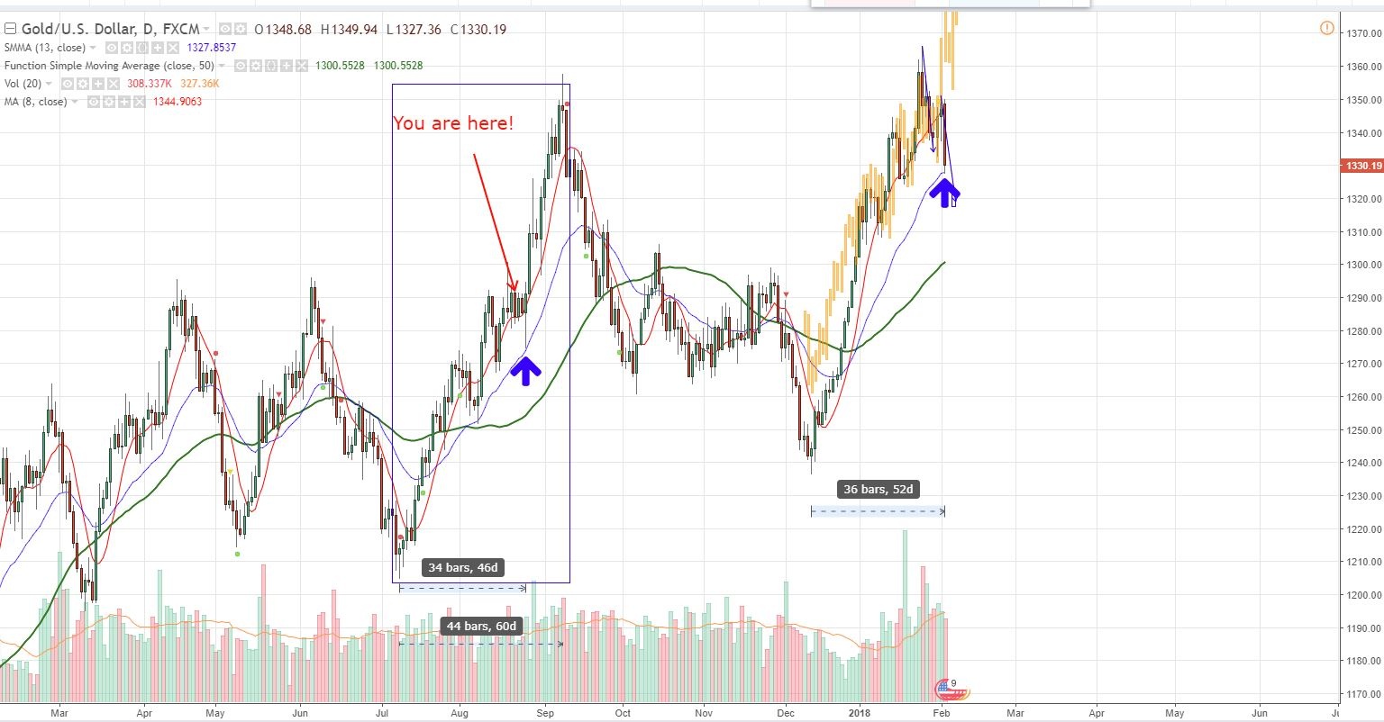 Looking at the Jul -Sept run last year, I pointed to the spot I think we are at now. There was a slam down and recovery on day 34, again we had a slam down and recovery on day 34. I just dont know if that was enough. Usually these drops are real scary. A one day drop and recovery will trigger a lot of stops.