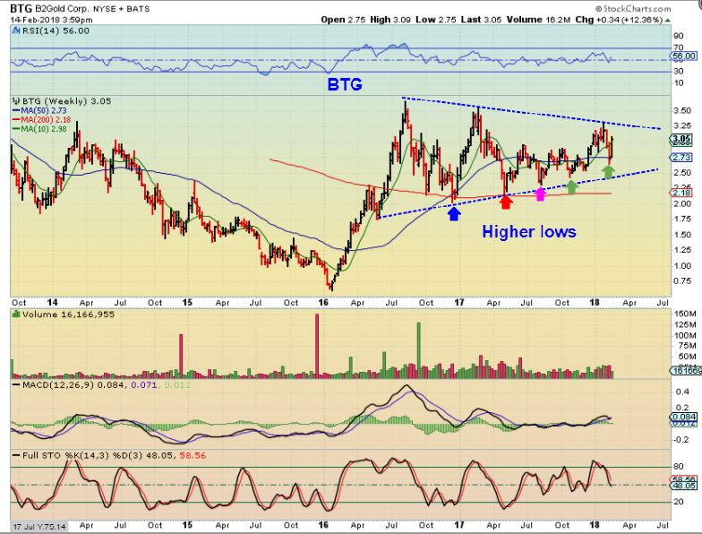 BTG – As pointed out in prior reports, BTG has proven itself to be a leader. It STILL has a series of Higher lows within this consolidation, and …