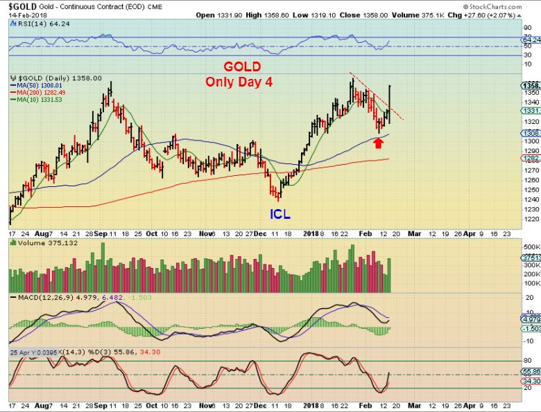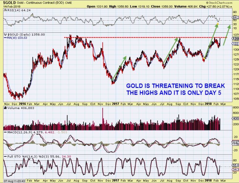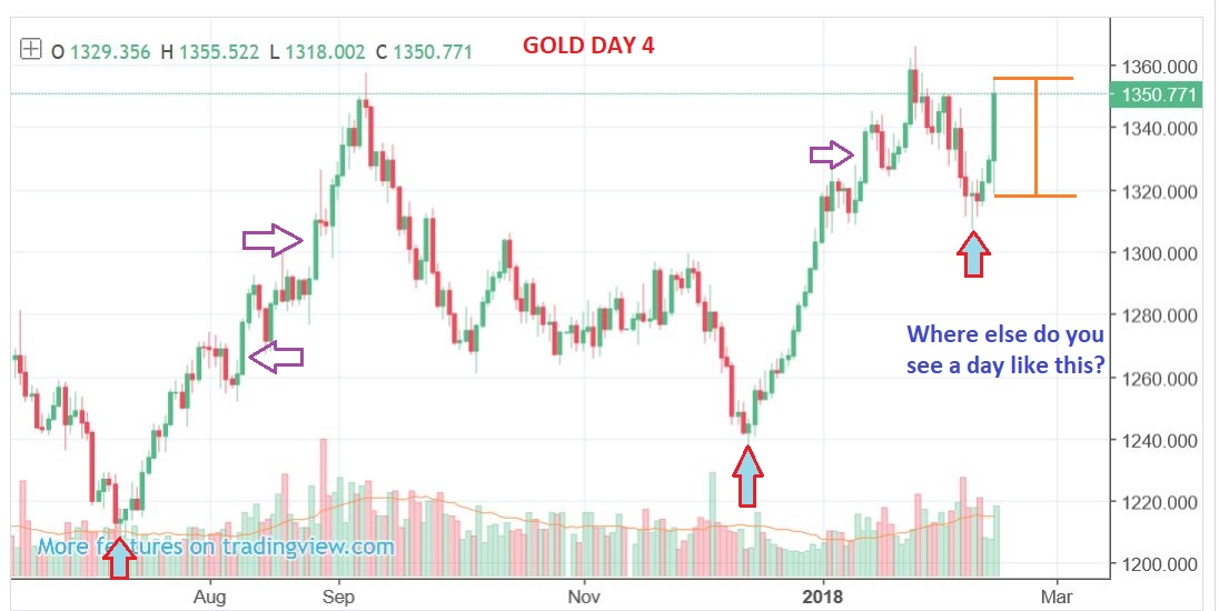 GOLD – Prior runs were mostly made from a few ‘day after day after day’ small gainers, but this move was big right out of the lows.