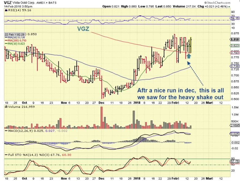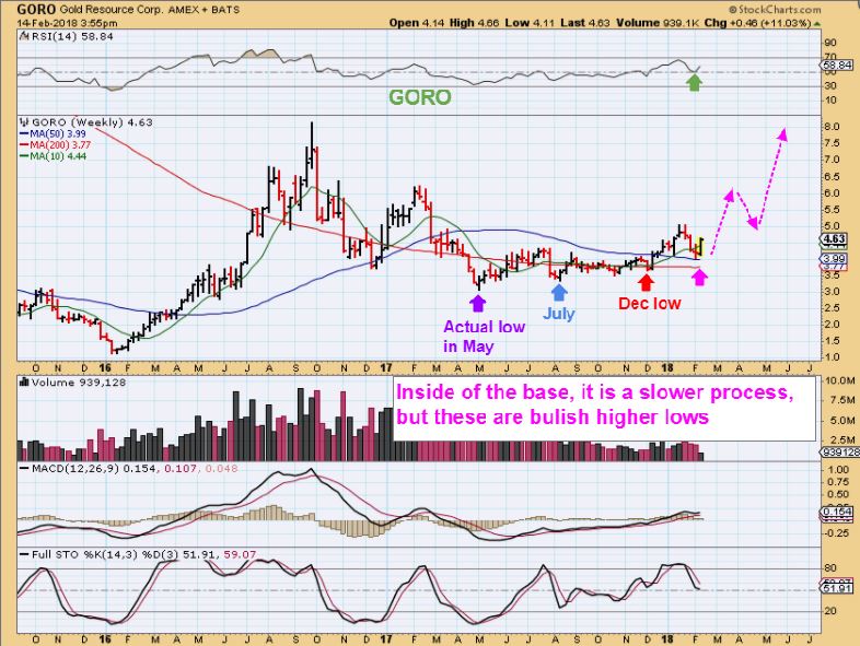 GORO – You can see that Goro is still a series of higher lows. The Shake out last week didn’t break Dec lows.